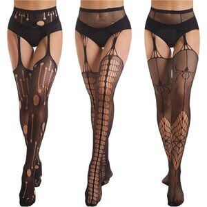 3 Fishnet Tights for Women Patterned Fishnets Stockings