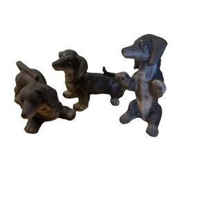 3 Vintage MSR Imports Dachshund Weiner Dog 4" Porcelain Ceramic Figurines. Two have injury’s one has part of an ear missing and one has his tail broken (I have the tail pieces) they are adorable and need a new home. Preowned flaws