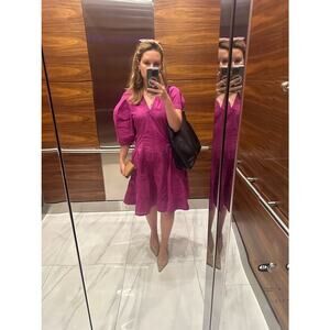 3.1 PHILLIP LIM Purple A-Line V-Neck Puff Sleeves Godet Belted Dress Size 2