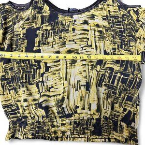 Bebe cute Y2K Yellow and black abstract print cold shoulder top