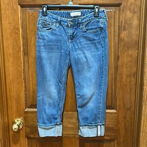 (3/$15)Banana Republic low rise denim capris size 1 petite or 25 petite. Stretch