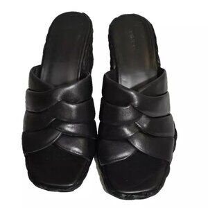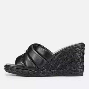 $350 VINCE Gilian Leather Wedge Sandal BLACK ESPADRILLES LEATHER 9.5 (MF12)