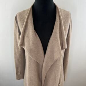 360 Cashmere Tan/Brown Color-Block Draped Relaxed Cardigan Sweater Pockets S