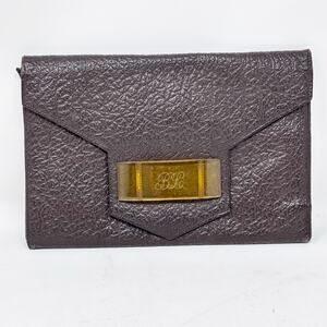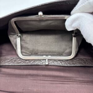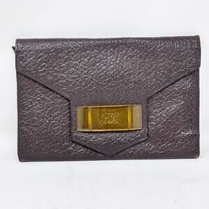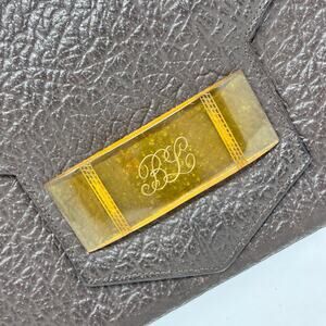 40s-50s Art Deco Brown Pebbled Leather Clutch with Bakelite Snap Closure