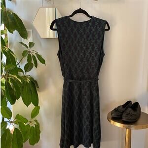41 Hawthorn XL Wrap Dress | Navy Green Geometric Sleeveless Business Capsule EUC