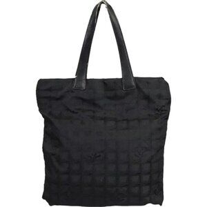 (V2) Chanel Tote Bag Travel Line Black Nylon