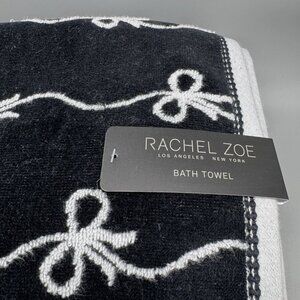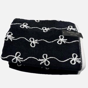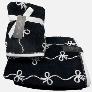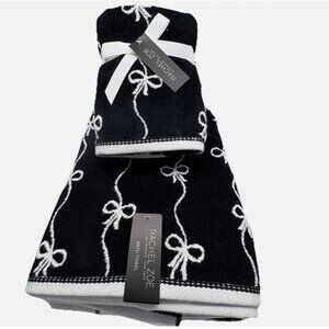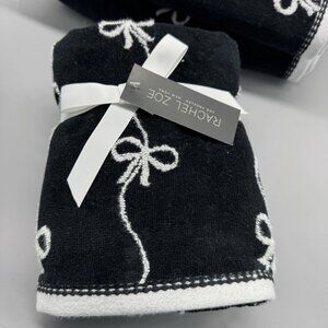 4pc Rachel Zoe Black White Trailing Ribbon Bows 2 Bath 2 Hand Towel Set NEW