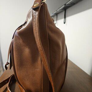 PU/Vegan handbag. Small dark spot on back (see second picture). Measurements: 13"w x 12" h x 4 1/2" d. Max strap drop 21 1/2".