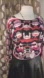this is a beautiful top with vibrant colors reds, pinks and blacks with a hint of tan. it has a slight sheerness to it. cool for summer. size large. brand zozo. 1/4 sleeve.