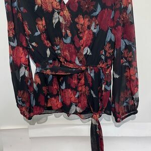 52seven Women's Multicolor Floral Tie Waist Long Sleeve Blouson Blouse Large NWT