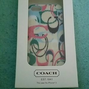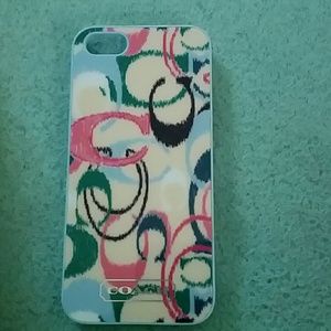 pink green violet cream and blue coach authentic iPhone 5 case with silver coach logo. price is only scribbled on back because it was a Christmas present. only giving away because I got a different phone