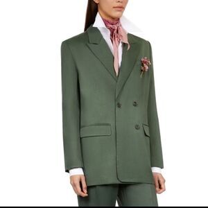 The Kooples Twill Blazer. Color: Khaki.Size:40FR  Material: 55% linen/43% viscose/2% elastane; lining: 100% viscose; pocket lining: