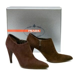 PRADA Brown Suede Ankle Booties - Size 38
