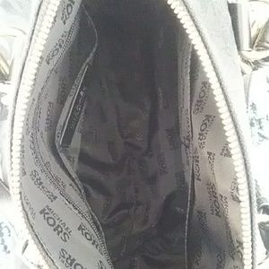 Very lightly used black and gold Michael kors duffel-style purse. With 4 pockets and one zippered pocket in the bag's interior.