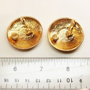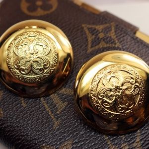 You’ll be mesmerized at the exquisite pattern on these oversized, gold plated, clip on earrings from the House of Givenchy. They speak decadence and glamour! These vintage beauties feature highly polished domes with an intricate, romantic Celtic knot elegantly etched which is alluring and draws you in. These gorgeous works of art measure approximately 1.5” in diameter and are signed on the clip on mechanism. Please take a look at our other vintage Givenchy jewelry. Reasonable offers accepted.