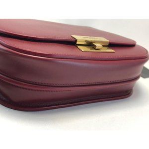 This dark red lamb skin Betty satchel from Saint Laurent features a foldover top with push-lock closure, a gold-tone logo plaque, an internal slip pocket and an adjustable shoulder strap.