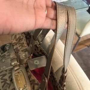 This Authentic carry All Tote is not only huge but it is SUPER CLEAN! No rips tears or blemishes. Canvas Monogram with a tinge of pewter on leather trim. The cinched bottleneck is styled at the top with adjustable straps to tighten or loosen the cinch. Snap closure. Big and sturdy enough to be a stylish back-to-school or even a DIAPER bag. has a detachable longer strap to be carried over the shoulder. Multiple side pockets