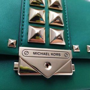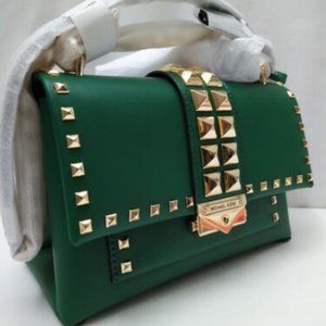 Michael Kors Cece Jewel Green Faux Leather Studs Satchel Shoulder Bag