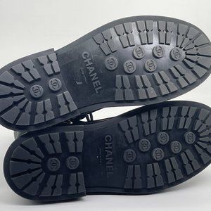 CHANEL 21K Leather Knit CC Logo Lace Up Combat Ankle Bootie Boots Shoes $1900