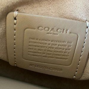 Printed coated canvas and smooth leather Two credit card slots Inside zip pocket Pushlock closure, fabric lining Outside open pocket Detachable strap with 21 1/2" drop for shoulder or crossbody wear 7 1/4" (L) x 5 1/4" (H) x 2 3/4" (W) Style No. C9958