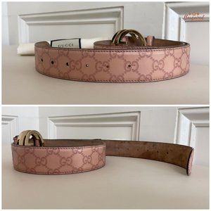 Authentic Gucci Pink Guccissima Leather Gold Interlocking G Buckle Belt 90/36