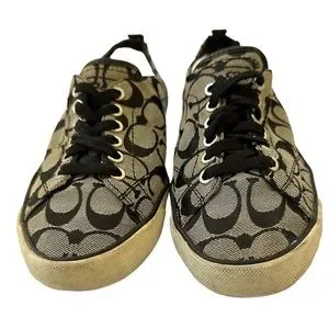 COACH Gray / Black Monogram Canvas Sneakers