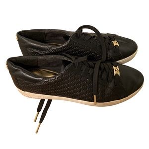 Michael Kors black perforated leather low top lace up sneaker shoes women's 8.5