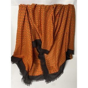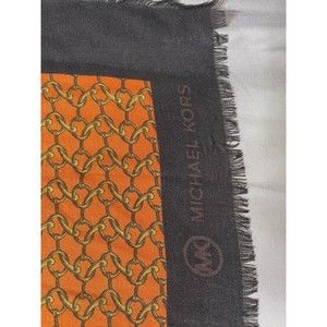 VTG Michael Kors Scarf Shawl Wrap Pashmina Orange Brown Gold Chain Link Pattern