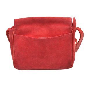 This style has been re-released by Gucci & is a must have! The bag is an envelope top, shoulder purse or cross body that is made of rich true red leather and suede with a bold, gold  horse-bit equestrian accent at the center!  The boxy, rectangular shaped purse has a structured appearance and a deep bottom, so it can hold a lot more than you might think! It has a long, adjustable, flat leather shoulder strap, allowing it to be worn as a shoulder or cross body style and an exterior pocket on the back.