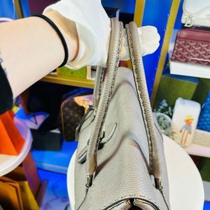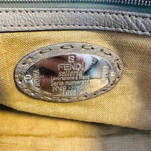 Fendi Selleria Silver Metallic Calf Skin Leather Linda Pebble Large Tote Hand Ba