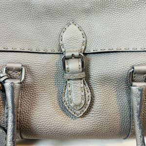 Fendi Selleria Silver Metallic Calf Skin Leather Linda Pebble Large Tote Hand Bag