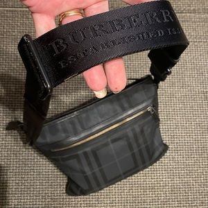 BURBERRY Black Check Messenger Bag w/LOGO Strapping/italian made🎁EUC