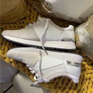 This pair of Michael Kors sneakers is an exceptional purchase. It has been worn only once, as evident from its impeccable condition. The sneakers have been meticulously cared for and are in a flawless state. They are absolutely stunning.