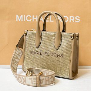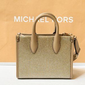 Michael Kors Mirella XS MINI Shopper Tote Shoulder Crossbody Bag Sequins Camel