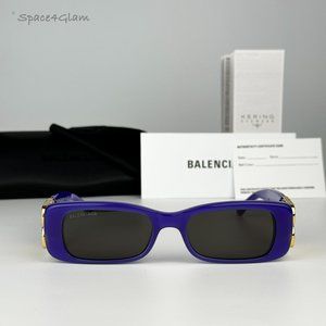 NEW Balenciaga BB0096S 004 Violet Gold Gray Rectangle Unisex Sunglasses