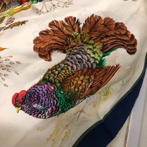 GUCCI Vintage Pheasants & Flowers Silk Scarf-Rolled/Stitched Edges