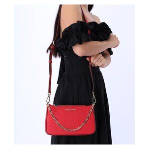 Michael Kors Jet Set Travel Medium Zip Pouchette Crossbody Bright Red Leather
