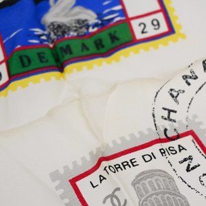 CHANEL CC Logo Stamp Pattern Scarf Handkerchief 100% Silk Blue Accessory 61RJ341