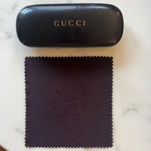 Vintage Gucci hard eyeglasses eyeglass case black in great shape w/Gucci cleaning cloth