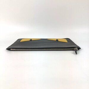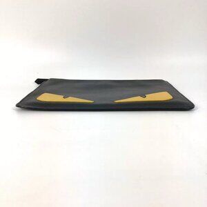 FENDI 7N0078 monster pouch bag Clutch bag Leather Black/yellow