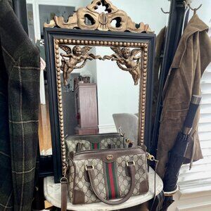 Gucci Monogram Red & Green Stripe Boston Bag (Vintage)