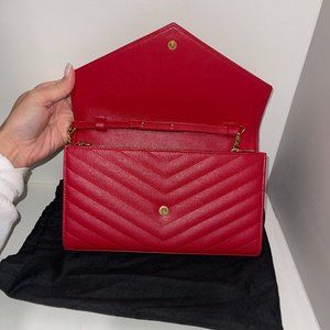 COPY - Saint Laurent Monogram Large Grain de Poudre Calfskin Wallet on Chain - …