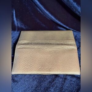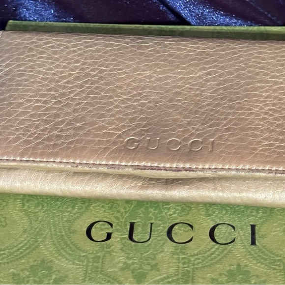 - **Exterior**: The wallet features an embossed "GUCCI" logo on the exterior, which adds a subtle yet distinct brand mark.