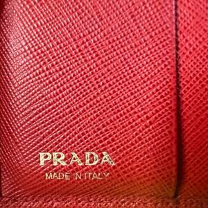 Authentic PRADA Saffiano Lux Leather Tri-Fold Wallet Red with Bow