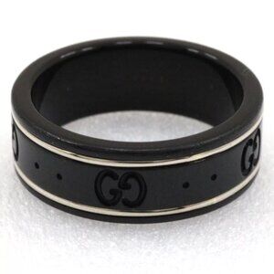 GUCCI Icon thin band Ring black K18 white gold/corundum #7(US Size) 2.2g u...