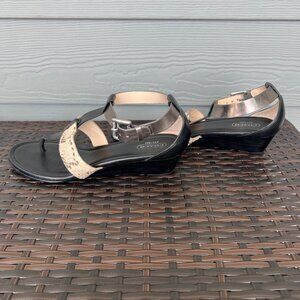 Coach black sandals with alligator and silver straps. Buckle strap. Size 9. Slight heal.
