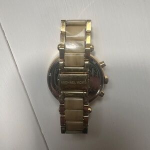 - Features gold-tone details, a gold tone dial, crystals at the 5-mm markers as well as on the numbers on the rim.