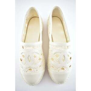 Chanel 20S Beige Ivory Patent Leather CC Logo Espadrille Slip On Ballet Flat 41