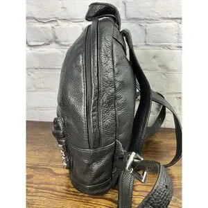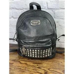 Michael Kors Black Pebble Leather Silver Studded Backpack Purse Shoulder Bag