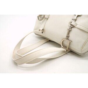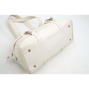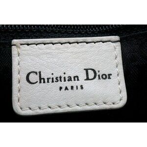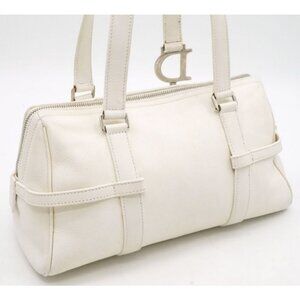 Authentic Christian Dior Calfskin Leather Boston Bag White Charms Purse Tote